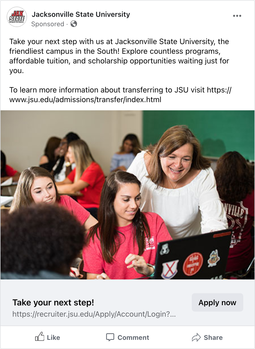 Social Media Campaign: Jacksonville State University Transfer Enrollment Promotion