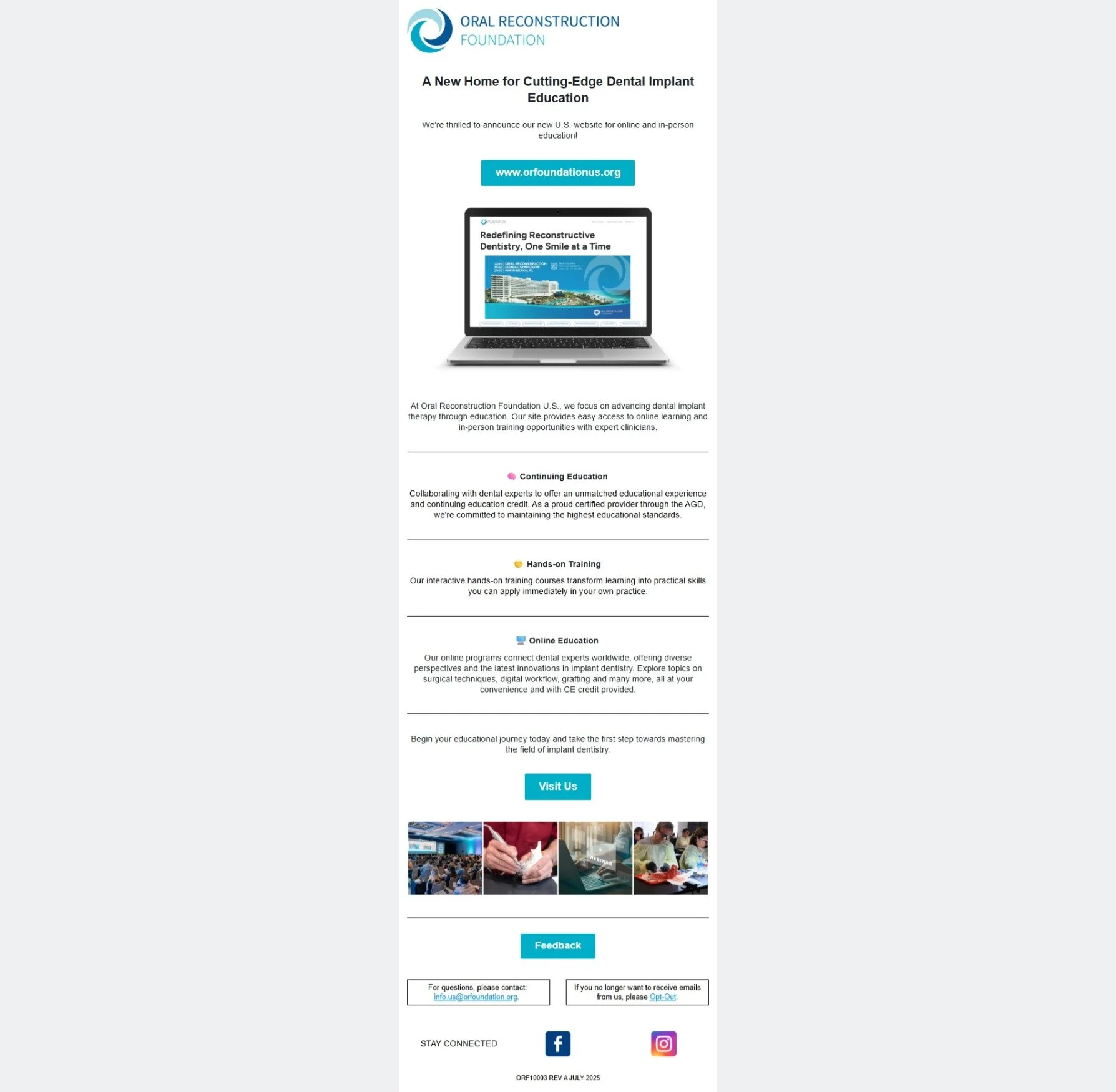 I developed a visually appealing, responsive email layout highlighting the foundation’s mission and educational offerings. It served as a key digital marketing tool, increasing awareness of educational resources and encouraging participation in CE programs.